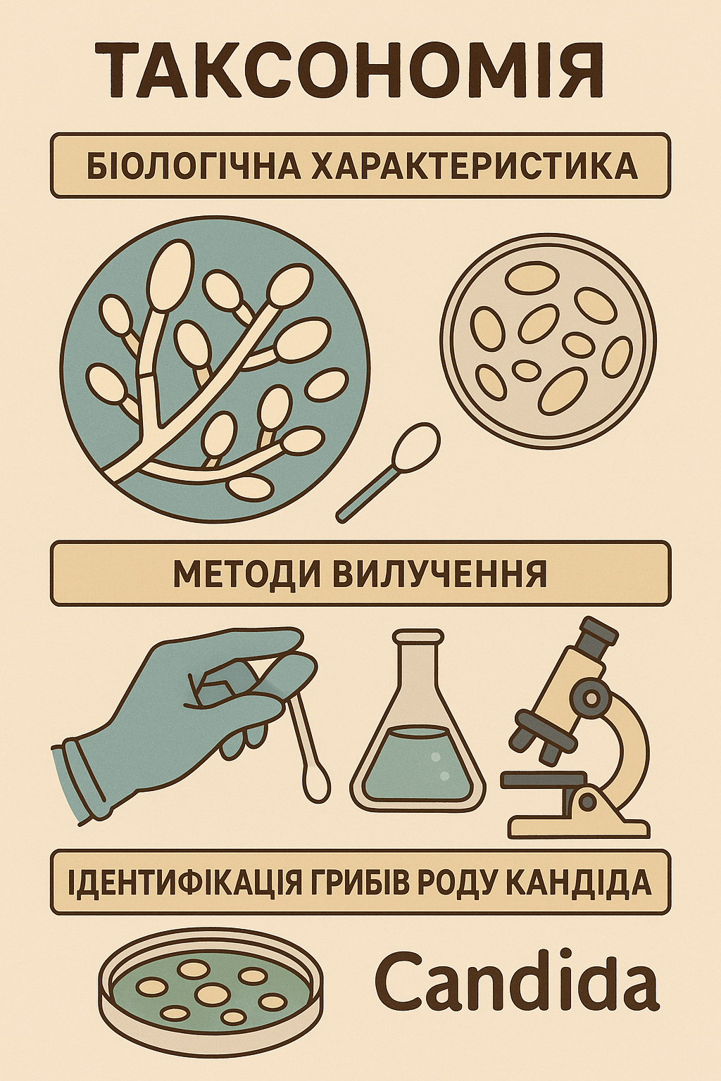 Тема: «Таксономія. Біологічна характеристика, методи вилучення та ідентифікації грибів роду Кандіда згідно МР No49.13/218.13»