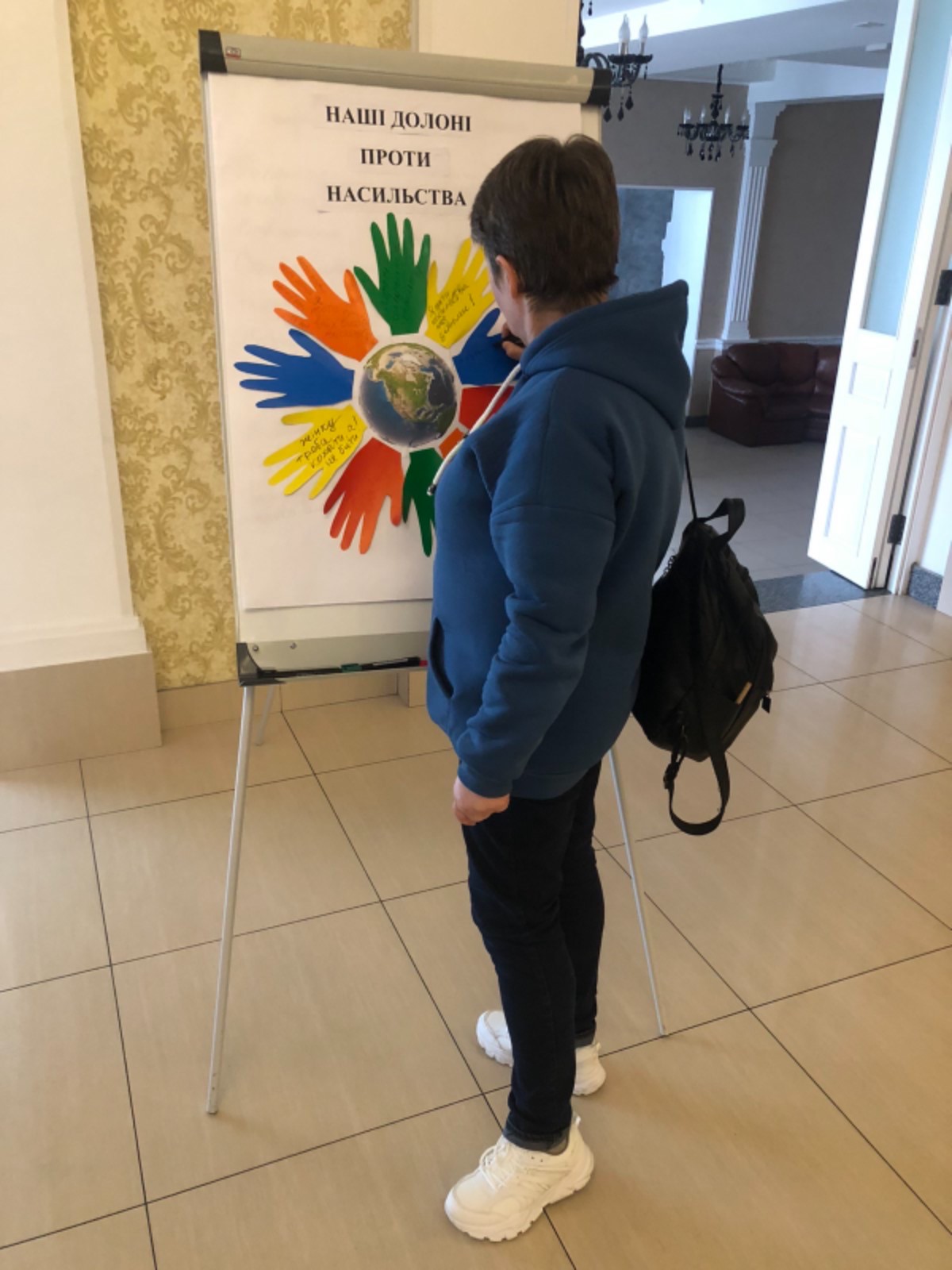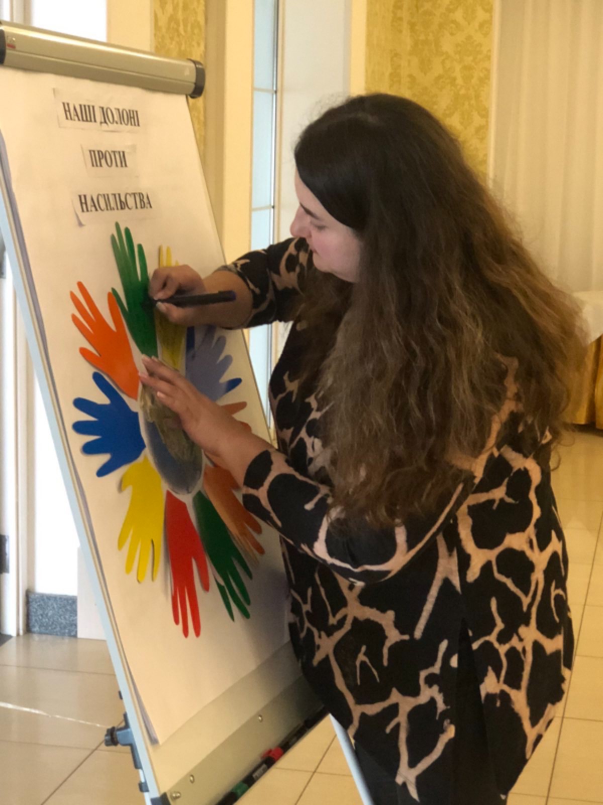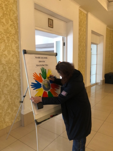 З метою привернути увагу та підвищити обізнаність до гендерно зумовленого насильства, фахівці відділу епідеміологічного нагляду(спостереження) та профілактики неінфекційних хвороб підготували та провели акцію «Наші долоні проти насильства». Ми запропонували всім небайдужим приєднатися до акції та залишити повідомлення про своє ставлення до насильства. Кожен з тих, хто приєднався до акції мав власну думку, комусь вистачило однієї фрази щоб висловити її, а комусь знадобилося багато місця аби написати своє відношення до насильства.