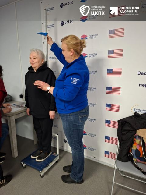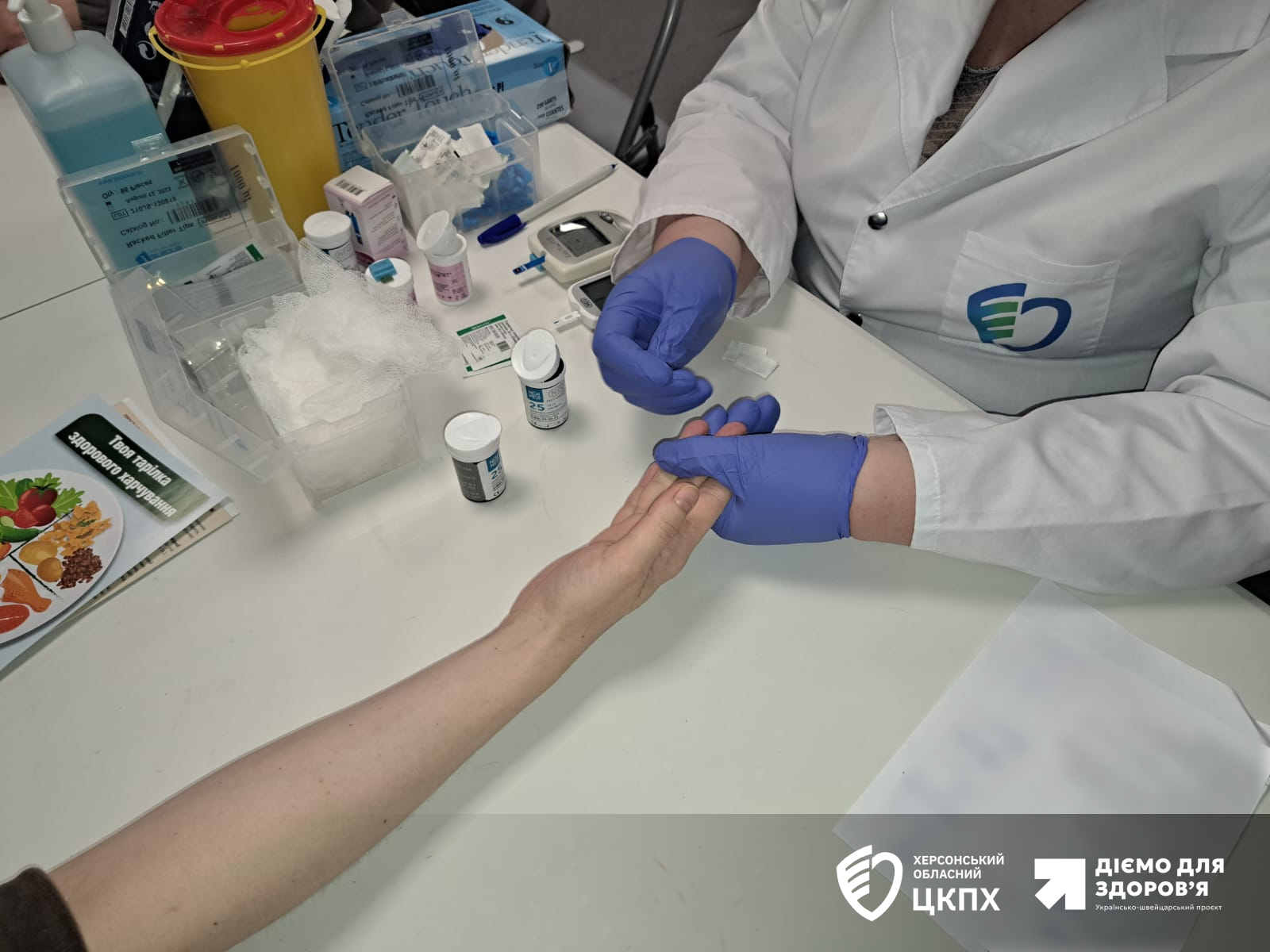 Понад 30 учасників заходу пройшли скринінгосновних показників здоров’я. Фахівці ДУ “Херсонський ОЦКПХ МОЗ” визначали антропометричні показники, розраховували індекс маси тіла, вимірювали артеріальний тиск, ЧСС, рівень сатурації крові киснем, рівень глюкози та холестерину в капілярній крові.