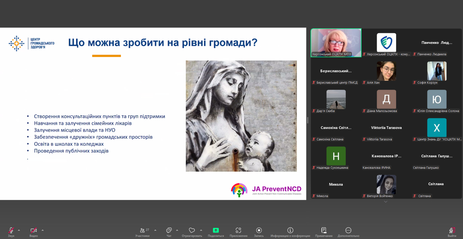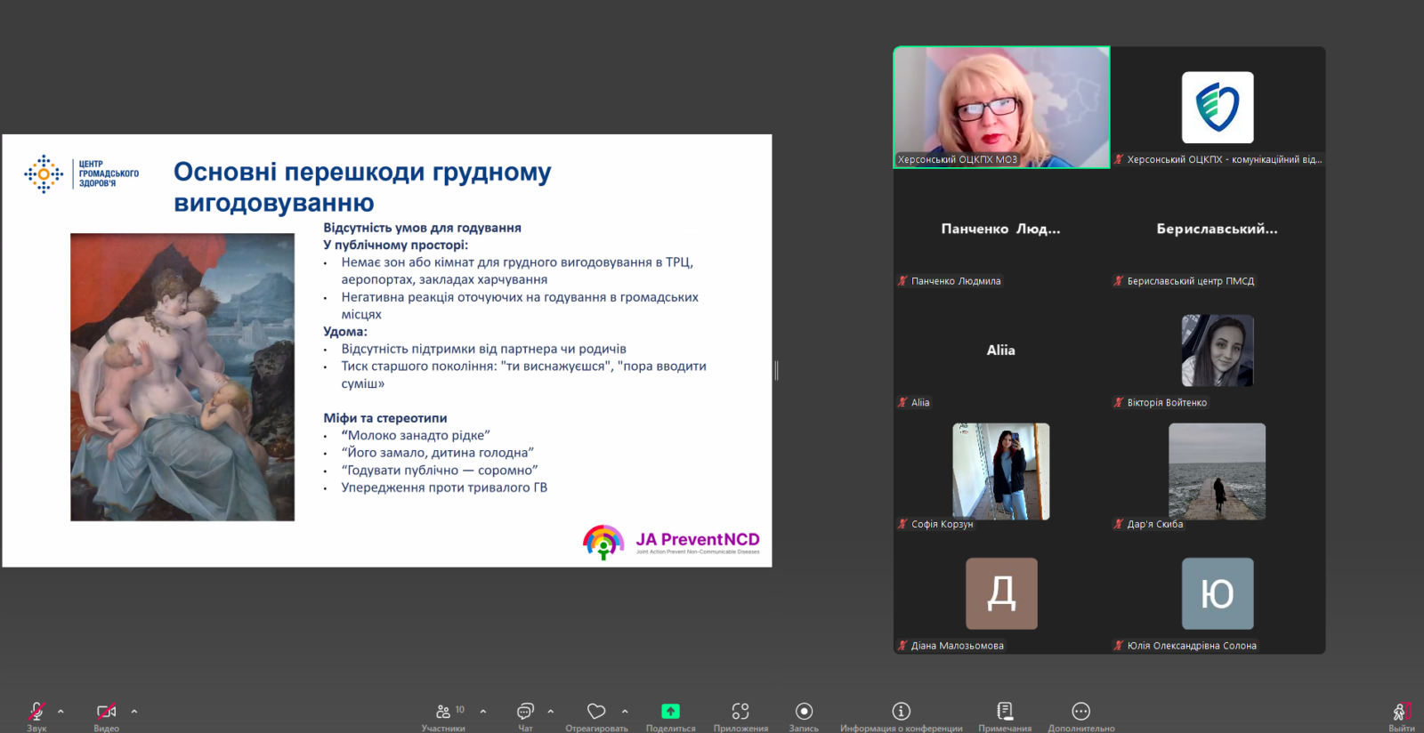У межах інформаційно-просвітницької кампанії «Пріоритет грудному вигодовуванню: створюємо стійкі системи підтримки» фахівці відділу епіднагляду та профілактики неінфекційних хвороб організували та провели онлайн-вебінар для фахівців закладів охорони здоров’я Херсонської області, зокрема з деокупованих територій, а також для студентів медичного факультету Херсонського державного університету.