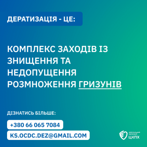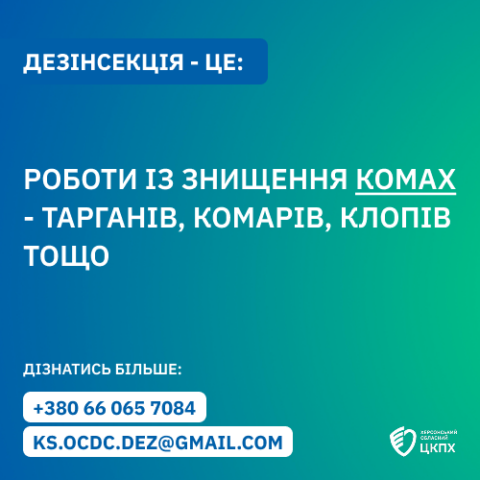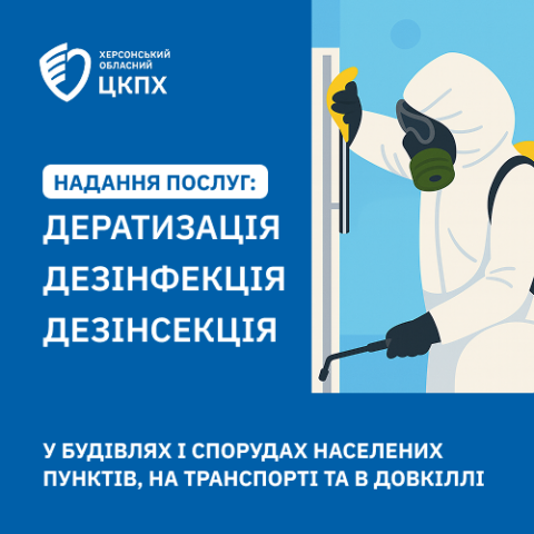 14 липня 2025ДУ Херсонський обласний центр контролю та профілактики хвороб МОЗ України надає професійні послуги з дезінфекції, дезінсекції та дератизації на території м. Херсон та області.