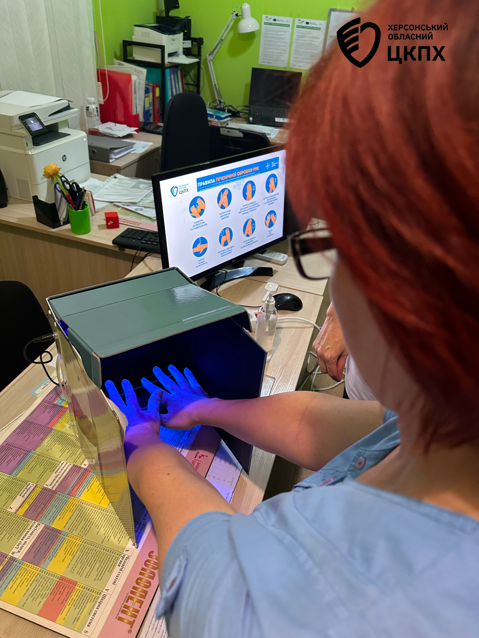 📚 Також з робітниками медичного закладу були проведені навчання за темами: «Гігієна рук – основа профілактики інфекцій, пов’язаних з наданням медичної допомоги» та «Використання засобів індивідуального захисту органів дихання». Після закінчення навчання усі працівники пройшли контрольний тест на якість гігієнічної обробки рук за допомогою переносного портативного УФ-боксу. Це дало їм змогу наочно побачити та зрозуміти, наскільки важливо правильно ретельно й відповідально дотримуватись правил гігієнічної обробки рук.