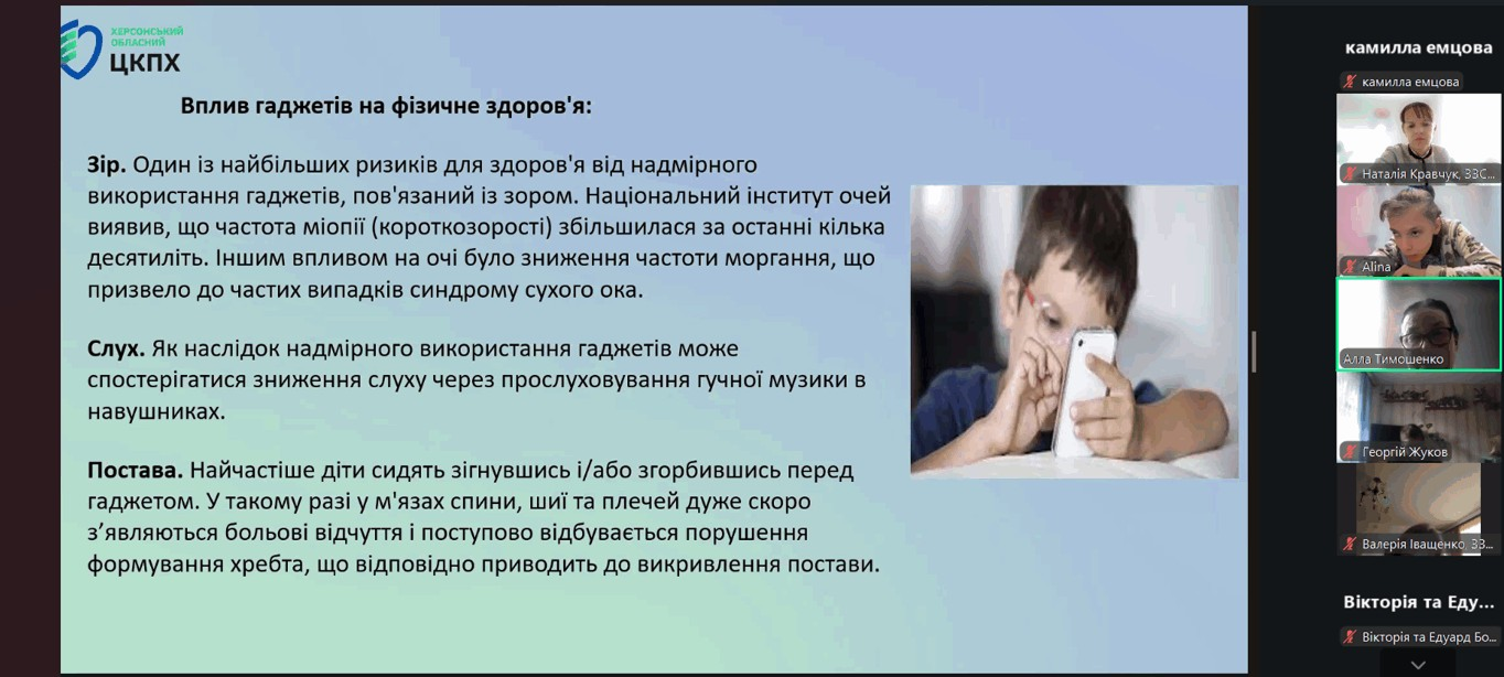 Під час зустрічі учасники активно обговорювали, які переваги та ризики несуть сучасні технології, як правильно користуватися смартфоном чи планшетом, щоб не нашкодити зору, поставі та психічному здоров’ю.