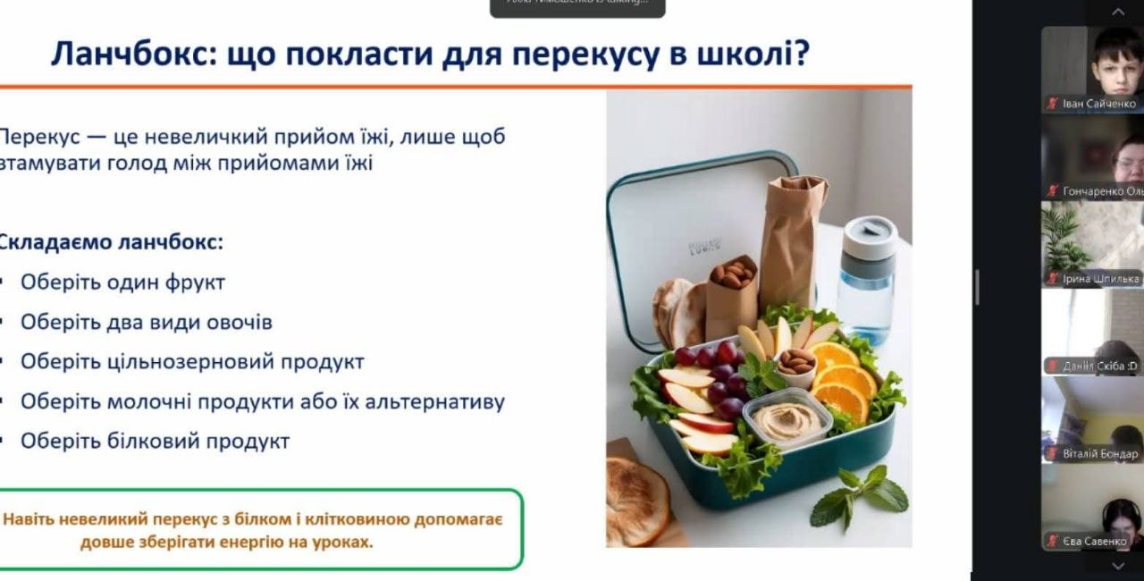 🥗 Під час заходу учні дізналися про основні принципи правильного здорового харчування, важливість регулярного харчування, вживання достатньої кількості овочів і фруктів, користь води та отримали відповіді на важливі запитання: як може виглядати збалансований прийом їжі.