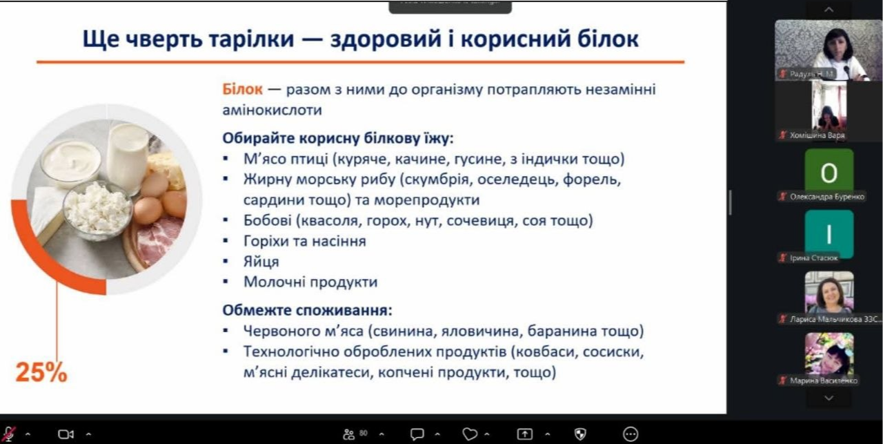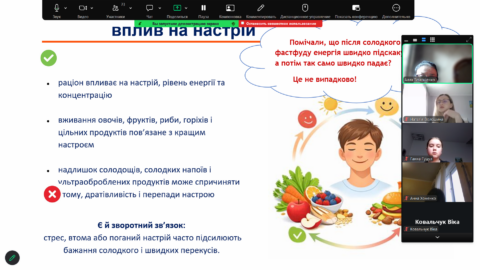👥 Захід проходив у інтерактивній формі: учні активно відповідали на запитання, брали участь у обговореннях та ділилися власними звичками харчування.