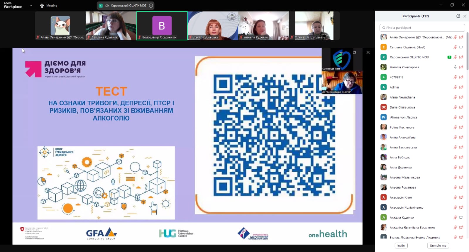 У ході заходу учасникам запропонували пройти тестування за міжнародною методикою AUDIT, що дозволяє визначити рівень ризику, пов’язаного з вживанням алкоголю. Після проходження тесту спікерка надала роз’яснення щодо отриманих результатів та рекомендації з профілактики, а також відповіла на запитання учасників.