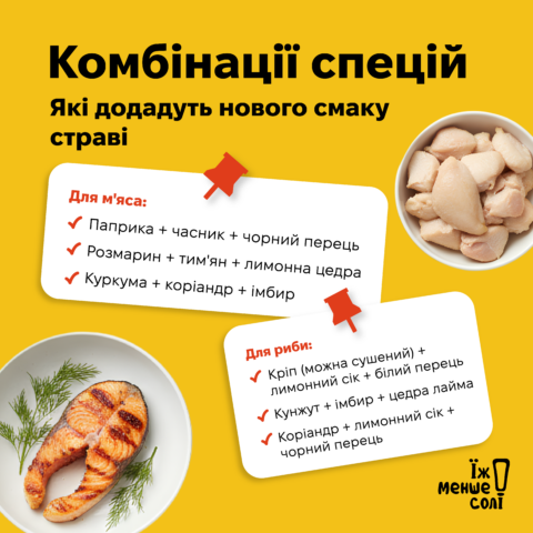 Разом з нутріциологинею, консультантки зі здорового харчування Дар’єю Трохимович підготували ідеї для заміни солі і звичних “солоних” заправок.