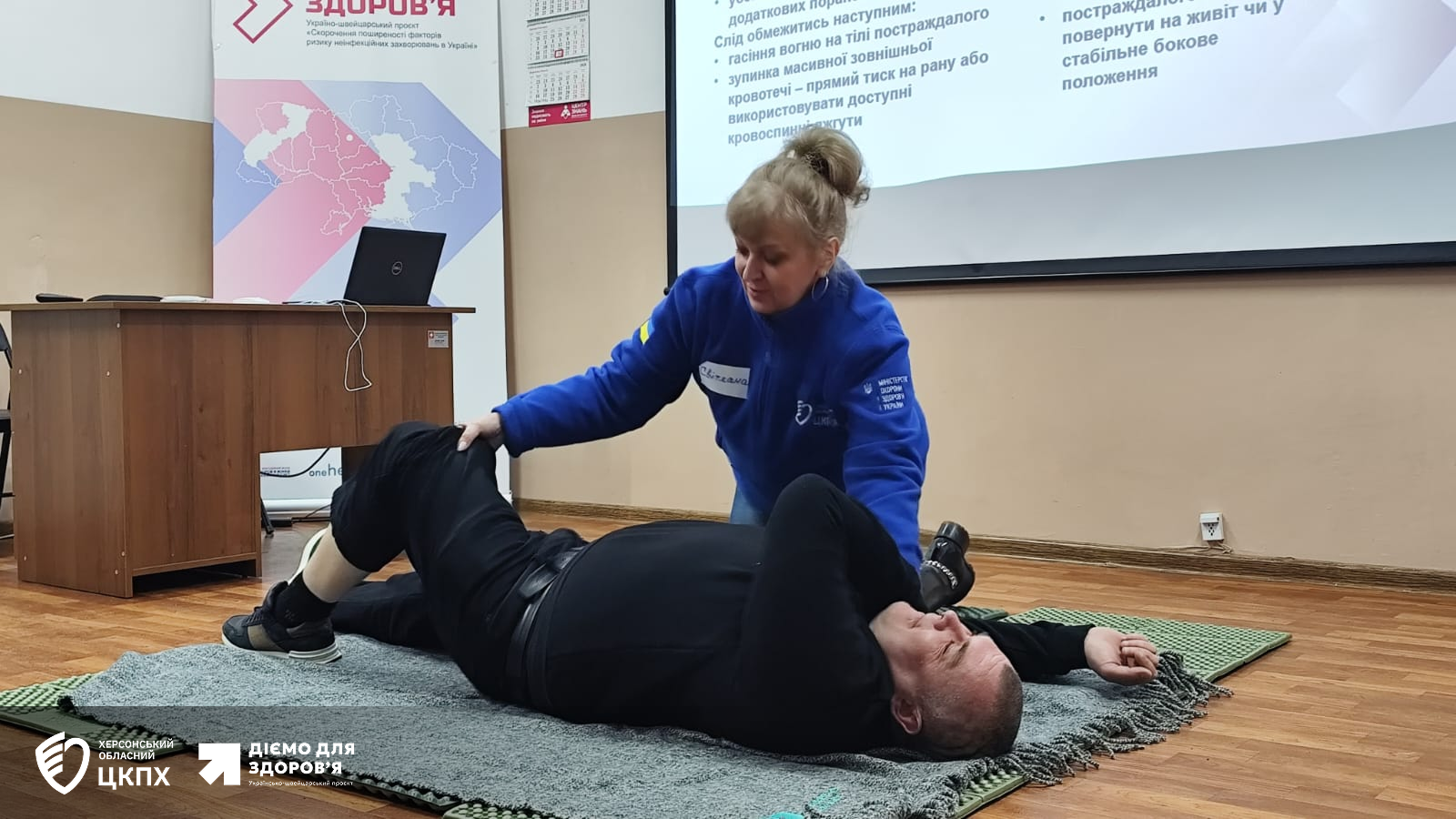 Центр знань з профілактики неінфекційних захворювань, що діє на базі ДУ “Херсонський ОЦКПХ МОЗ” активно співпрацює з громадами: для працівників Державної установи області 25 та 26 лютого було проведено тренінги з надання першої домедичної допомоги.
