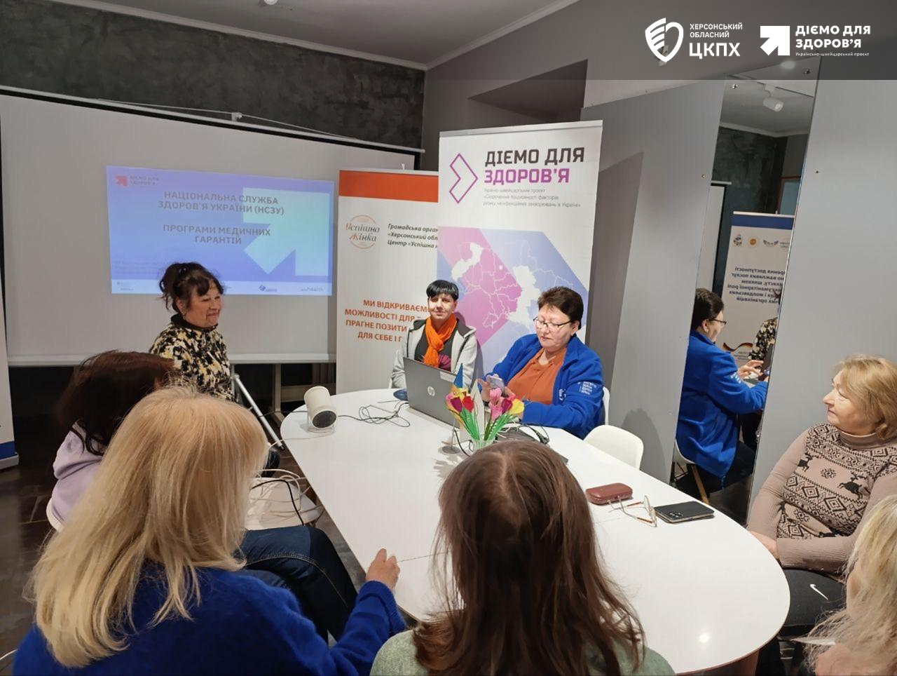 27 березня 2026📢 Для відвідувачів одного з безпечних просторів м. Херсона відбувся інформаційний вебінар з елементами воркшопу на тему: «Національна служба здоров’я України. Програма медичних гарантій. Доступні ліки».
