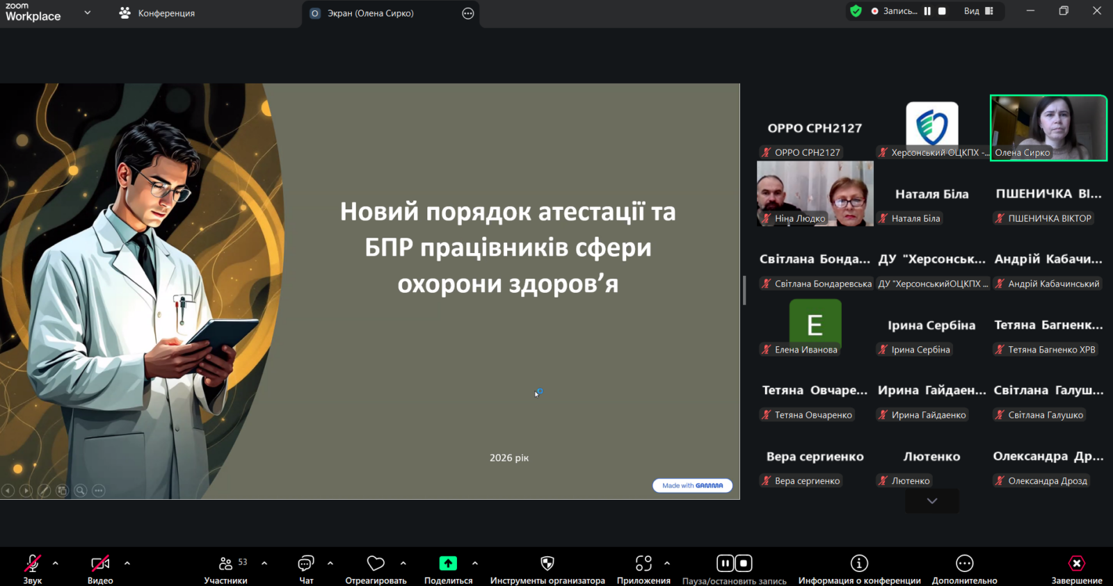 13 лютого 2026📚 Фахівцями ДУ “Херсонський ОЦКПХ МОЗ” проведено вебінар на тему «Новий порядок атестації та БПР працівників охорони здоров’я. Особисте освітнє портфоліо», присвячений актуальним змінам у системі атестації та безперервного професійного розвитку медичних працівників.