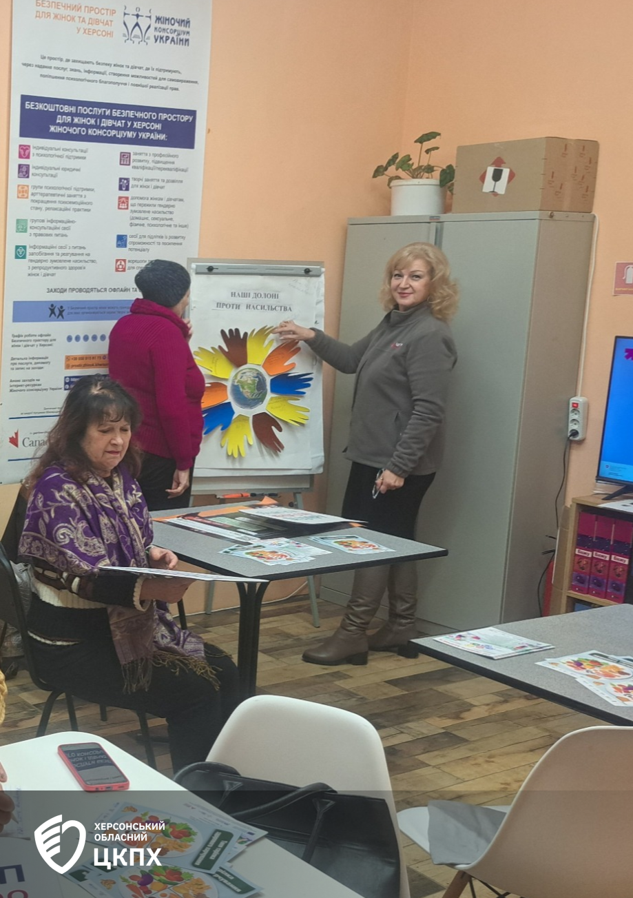 ✅ Для мешканців Херсонської громади в безпечному просторі Жіночого консорціуму України проведено захід «Ви не самотні» щодо домашнього та гендерно зумовленого насильства. Учасницям було надано змістовну інформацію щодо осередків та контактів підтримки жертв різних форм насильства.