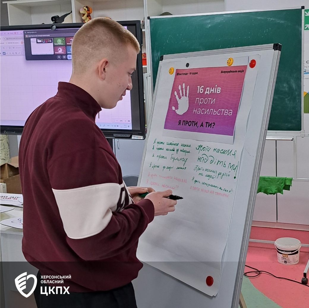✅ Для учнів 5-7 класів Херсонської спеціалізованої школи №12 проведено інтерактивний захід на тему: «16 днів проти насильства».