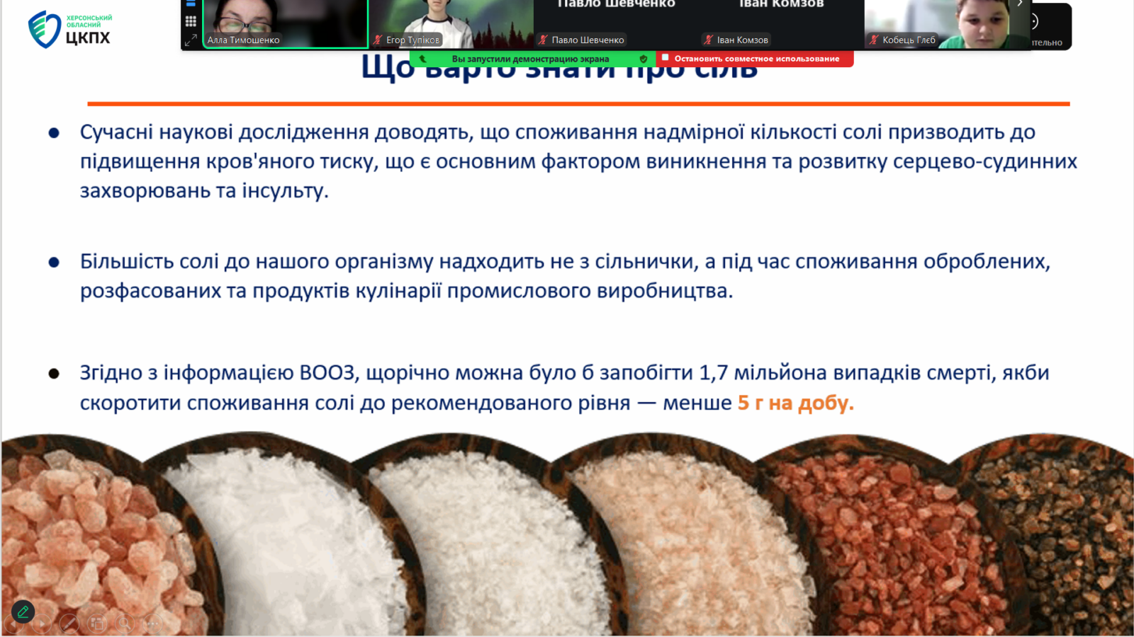 ✅ Учні дізналися, скільки солі насправді потрібно нашому організму, у яких продуктах її найбільше та як можна скоротити її вживання без втрати смаку. Обговорили прості, але дієві кроки: