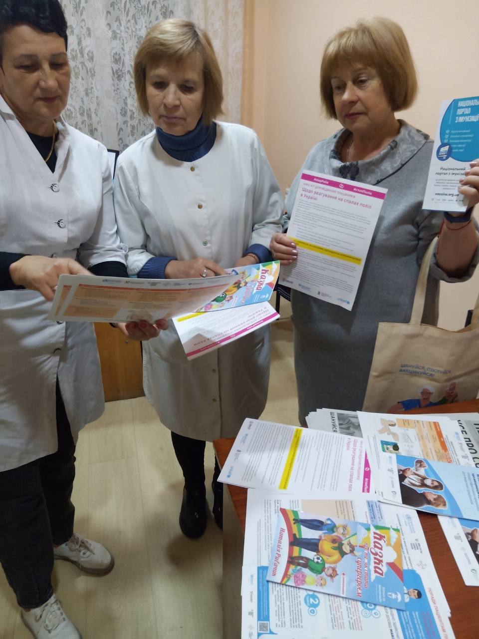 - брошури «Безпека ін’єкцій», «Холодовий ланцюг та моніторинг температурного режиму», «Як спілкуватись з пацієнтами про вакцинацію від COVID-19-100», «Щодо реагування на спалах поліо в Україні»;