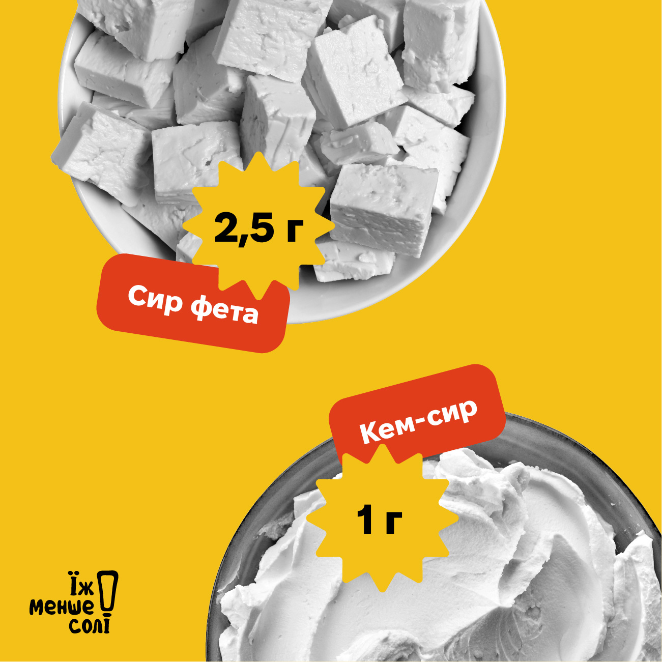 Чим менше солі у продукті — тим краще! Тому читай упаковку на продуктах, де вказана поживна цінність: обирай ті, де менше солі на 100 г!