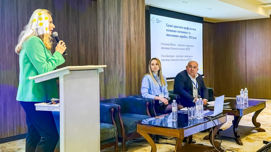 Заступниця генерального директора Львівського ОЦКПХ з епідеміологічного нагляду (спостереження) та профілактики неінфекційних захворювань Ольга Брезецька поділилась досвідом розширення бездимних зон у територіальних громадах області. Вона звернула увагу на вагомий комунікаційний компонент таких ініціатив: «Важливою складовою є інформування населення про переваги життя в середовищі, вільному від тютюнового диму, та залучення місцевих лідерів думок до просування цієї ідеї та культури».